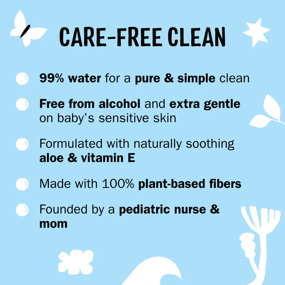 PRO TIP: Our delicate wipes can be used on all areas of the body, including baby’s face, hands and bottoms. Also great for cleaning up messes and spills, our wipes can be used on clothing, shoes, toys, tables, as well as walls and surfaces.
